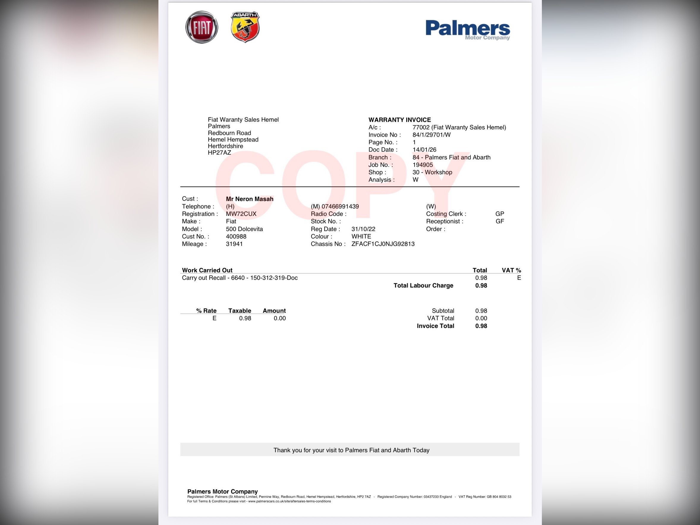 Fiat 500 Additional Information